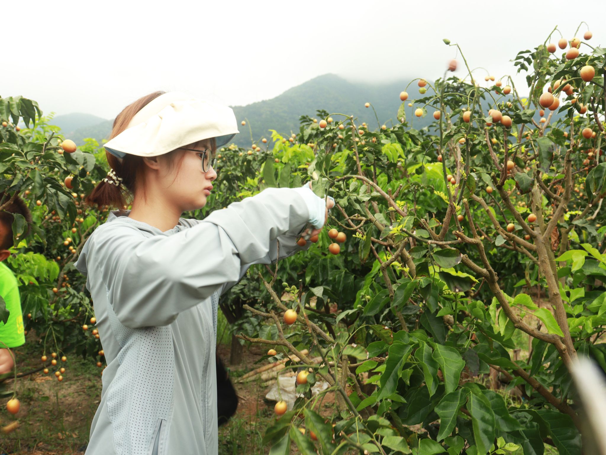 “我们参加三下乡活动,就是希望能为村民们带来一些帮助和关怀。”2022级金融学2班袁涵泞同学热情地说道。到达黄皮果园,胡大叔细心地教成员们黄皮果的采摘手法,团队成员们迅速投入到采摘的工作中。在胡大叔的指导下,成员们分成小组,每个小组负责一片果园区域,用手中的篮子和修剪刀寻找成熟的黄皮果,并轻轻地剪下放入篮子中。他们动作熟练、高效,积极配合,既保证了采摘的质量,又提高了采摘的效率。