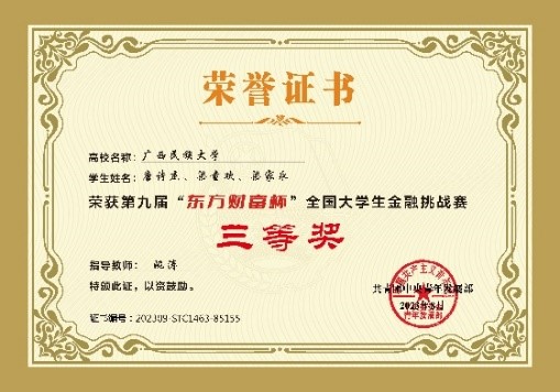 第九届“东方财富杯”全国大学生金融精英挑战赛获奖奖项