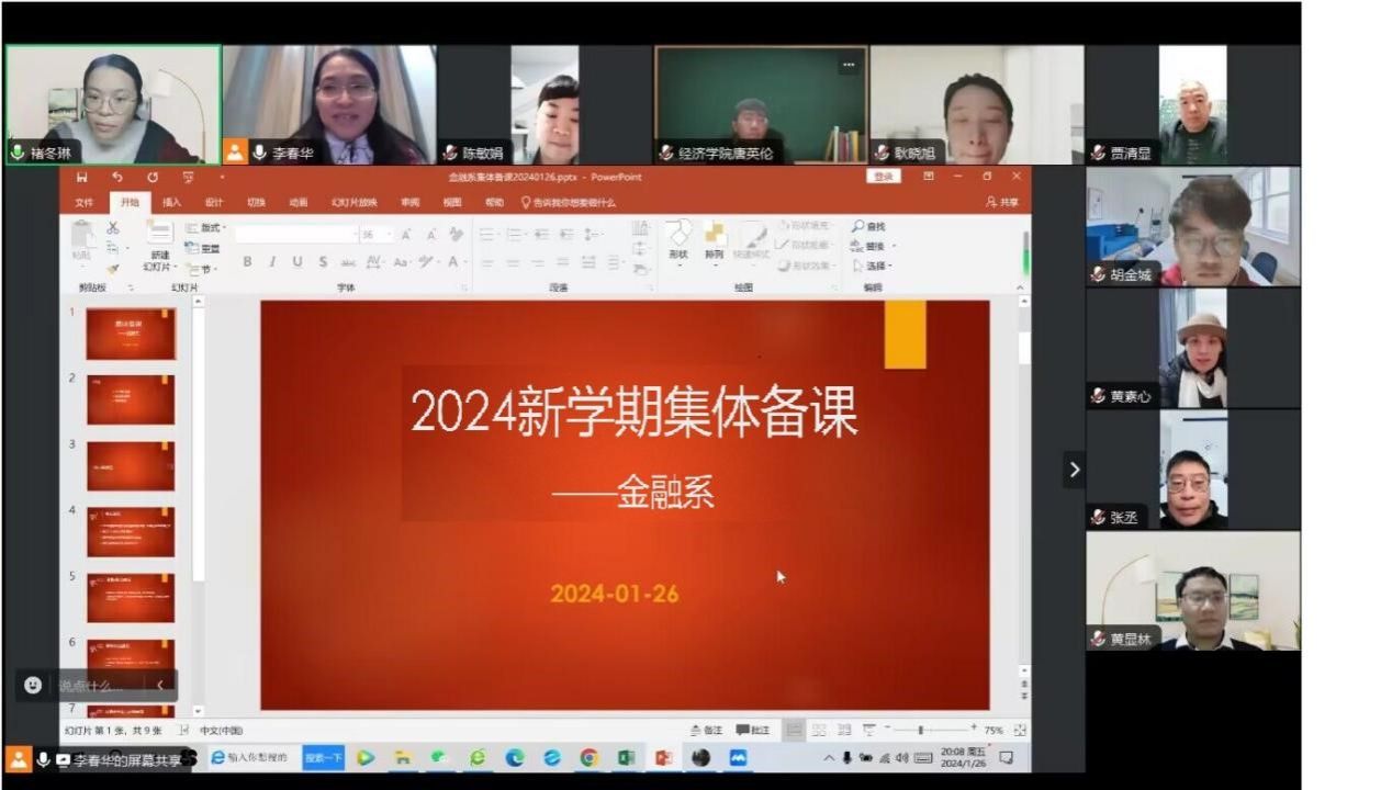 为总结金融系2023年的教学成效,汲取教学过程中的经验教训,让老师们充分利用寒假时间做好2024年春季学期的授课准备工作,金融系于1月26日晚在线上以腾讯会议的形式举行新学期的集体备课活动。