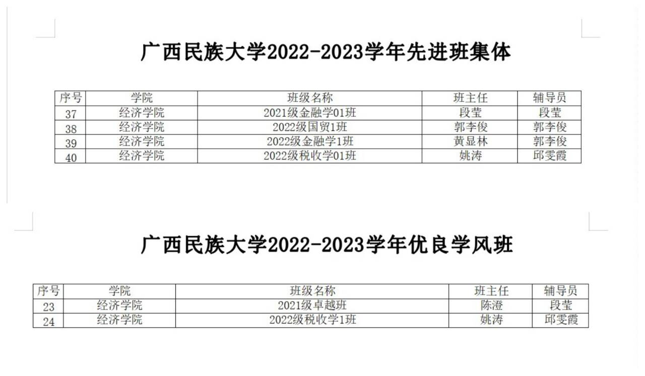 热烈祝贺betway必威西汉姆联官网六个班级荣获“广西民族大学2022-2023学年先进集体和优良学风班级”的称号,班级的成功离不开每个同学的努力,卫精填海、滴水成河,青春的意气在此相逢。