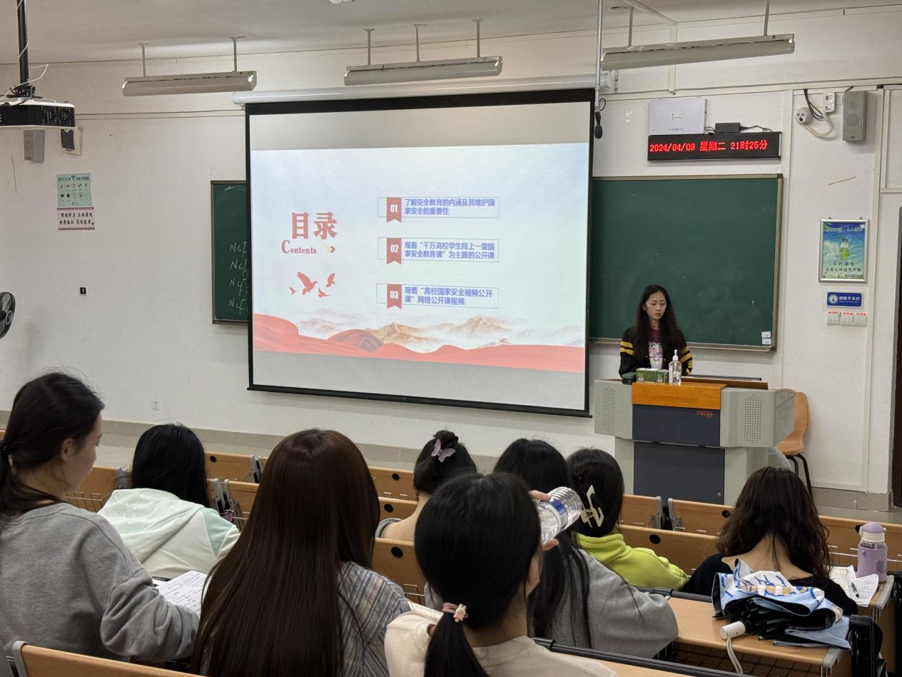 班会上,主讲人向同学们宣传国家安全法、国家情报法、网络安全法等国家安全相关法律,带领同学们认识国家安全宣传教育的意义。各班同学共同观看学习“千万高校学生同上一堂国家安全教育课”“高校国家安全视频公开课”两门网络公开课,并参与“全国大学生国家安全知识答题”活动,引导学生牢固树立国家安全意识和防范敌对势力意识,自觉关心、维护国家安全。