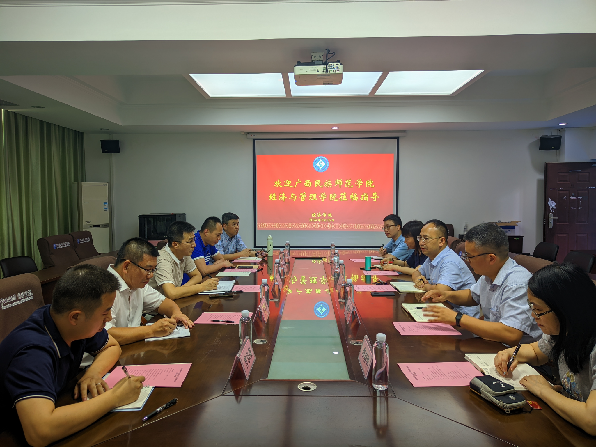 2024年5月15日下午,广西民族师范学院经济与管理学院王鹏飞副院长一行5人,前来我院进行座谈交流。我院出席本次座谈会的领导及教师代表分别为副院长刘志雄、院长助理杨宏昌、国贸系主任廖万红、金融系主任李春华、国贸系专任教师黄显雷。