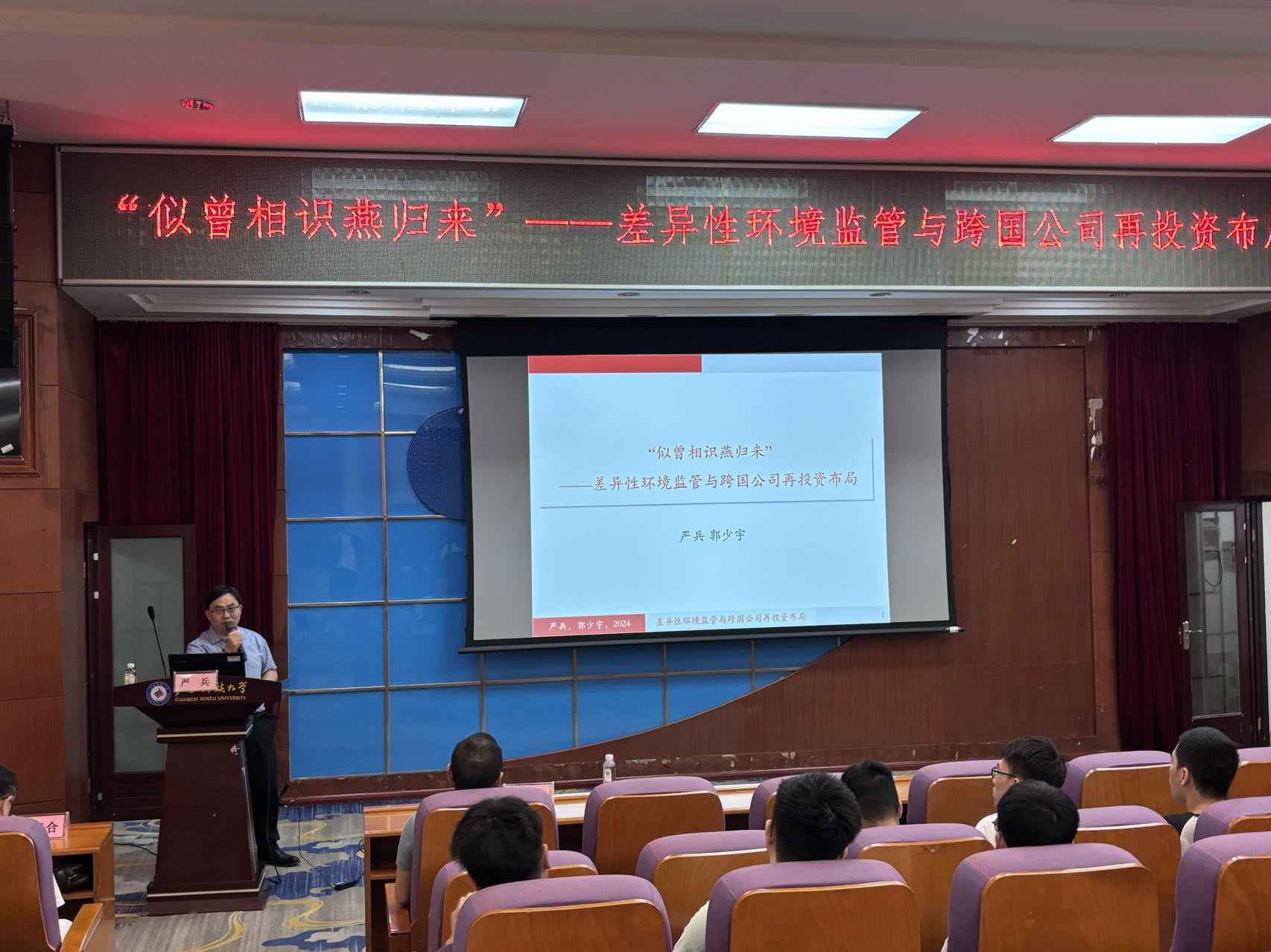 2024年6月27日上午,betway必威西汉姆联官网开展了主题为《“似曾相识燕归来”——差异性环境监管与跨国公司再投资布局》的专题讲座。本次讲座由南开大学betway必威西汉姆联官网副院长、国际经济研究所所长、博士生导师严兵教授主讲,广西民族大学betway必威西汉姆联官网胡超院长主持,2023级部分研究生参加。