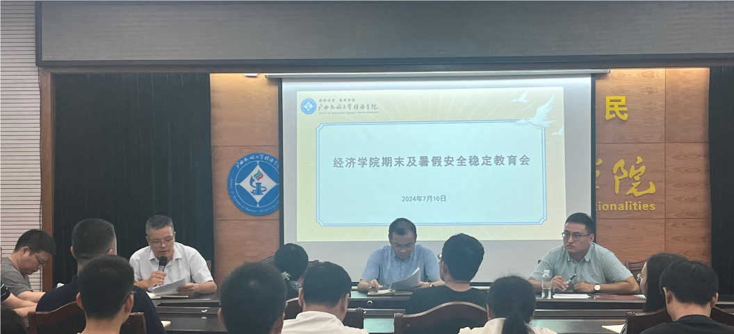 会上,杨宏昌传达了学校安全稳定工作相关会议精神,并紧密结合学院实际,就认真贯彻落实学校相关工作要求,对做好学院期末及暑假安全稳定工作进行了具体安排。最后,院长胡超强调师生要加强安全意识,防范网络电信诈骗。(初审:郭李俊 编辑:张晶晶、邓畅怡 校对:许寿益 复审:杨宏昌 终审:蓝巧燕)