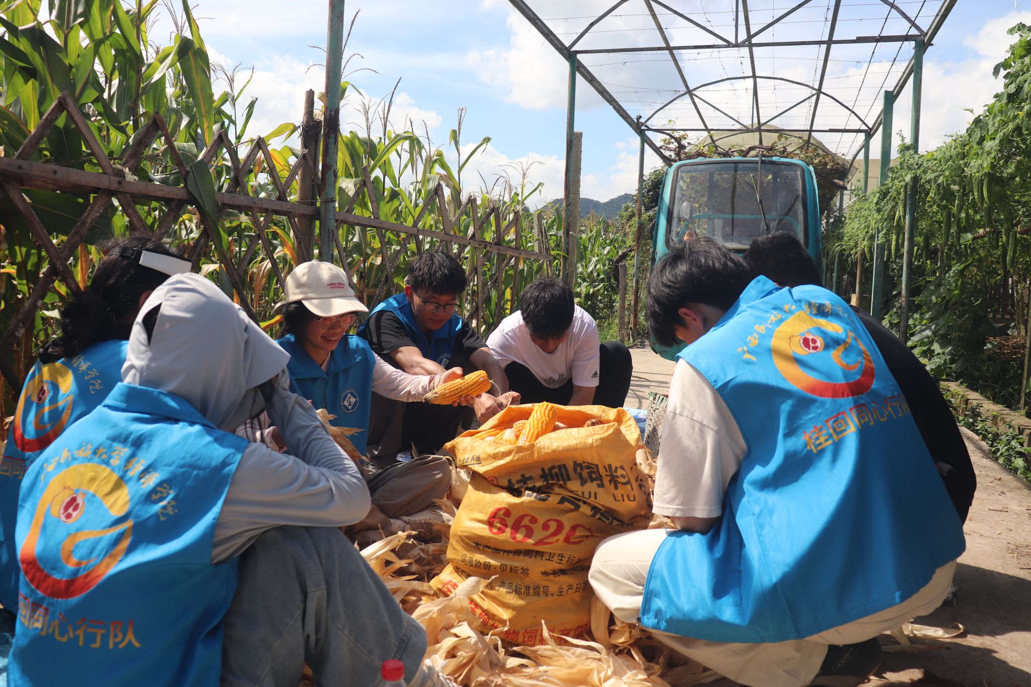 为进一步了解当地村民的生活情况,成员们走访当地村民,倾听村民需求,与他们深入交流当地民族的风俗习惯。当了解到当地村民黎大姐家的玉米正处于采摘期时,团队成员热情高涨,主动提出帮助黎大姐收玉米。队员2023级经济学1班陆泰安表示:“我们参加‘三下乡’活动,就是希望能为村民们带来一些帮助,近距离感受劳动人民的生活。”到达玉米地后,同学们在黎大姐的指导下迅速投入到采摘的工作中,分工明确、干劲十足。烈日下,同学们脸上挂满了汗珠,但眼神中却透露出坚定与勤劳。