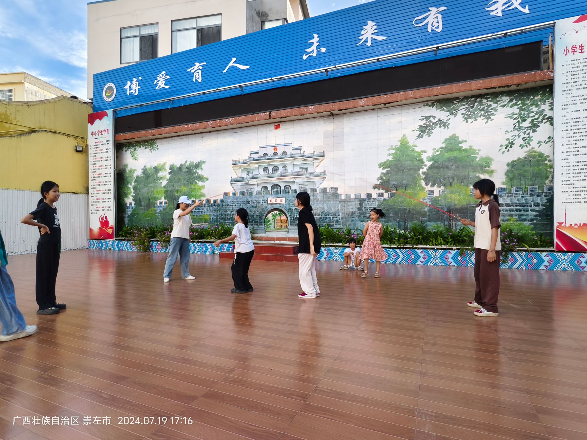 7月19日下午,团队成员秉持着发扬体育精神的信念,为学生们开展篮球、排球、羽毛球、太极、跳绳等体育教学活动,让学生们在体育中尽情享受大汗淋漓的畅快,增强体质、锤炼意志。作为边境的学校,凭祥市第二小学的体育教育仍存在薄弱之处,同学们在此次活动中为学校实现德、智、体、美、劳全面发展的教育目标贡献了自己的青春力量。