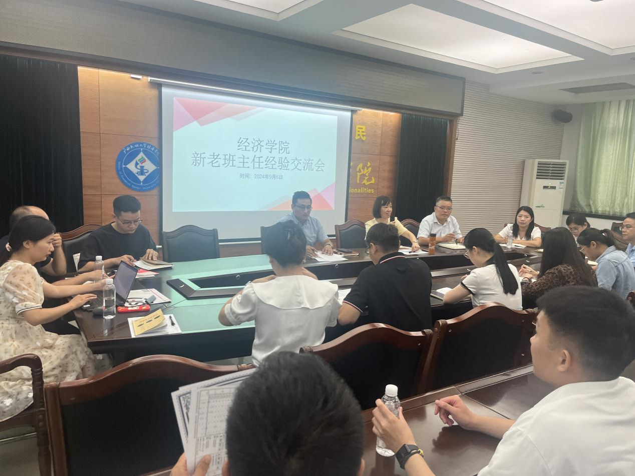 2024年9月6日,我院于格物楼206举办新老班主任经验交流会,学院党委副书记蓝巧燕主持召开,副院长高斌、院长助理杨宏昌、学院全体辅导员、班主任参会。