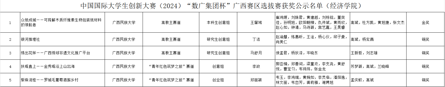 近日,广西壮族自治区教育厅公布中国国际大学生创新大赛(2024)广西赛区选拔赛获奖名单。betway必威西汉姆联官网各团队在比赛中斩获佳绩,共获1金4铜。