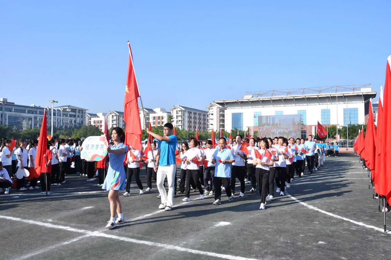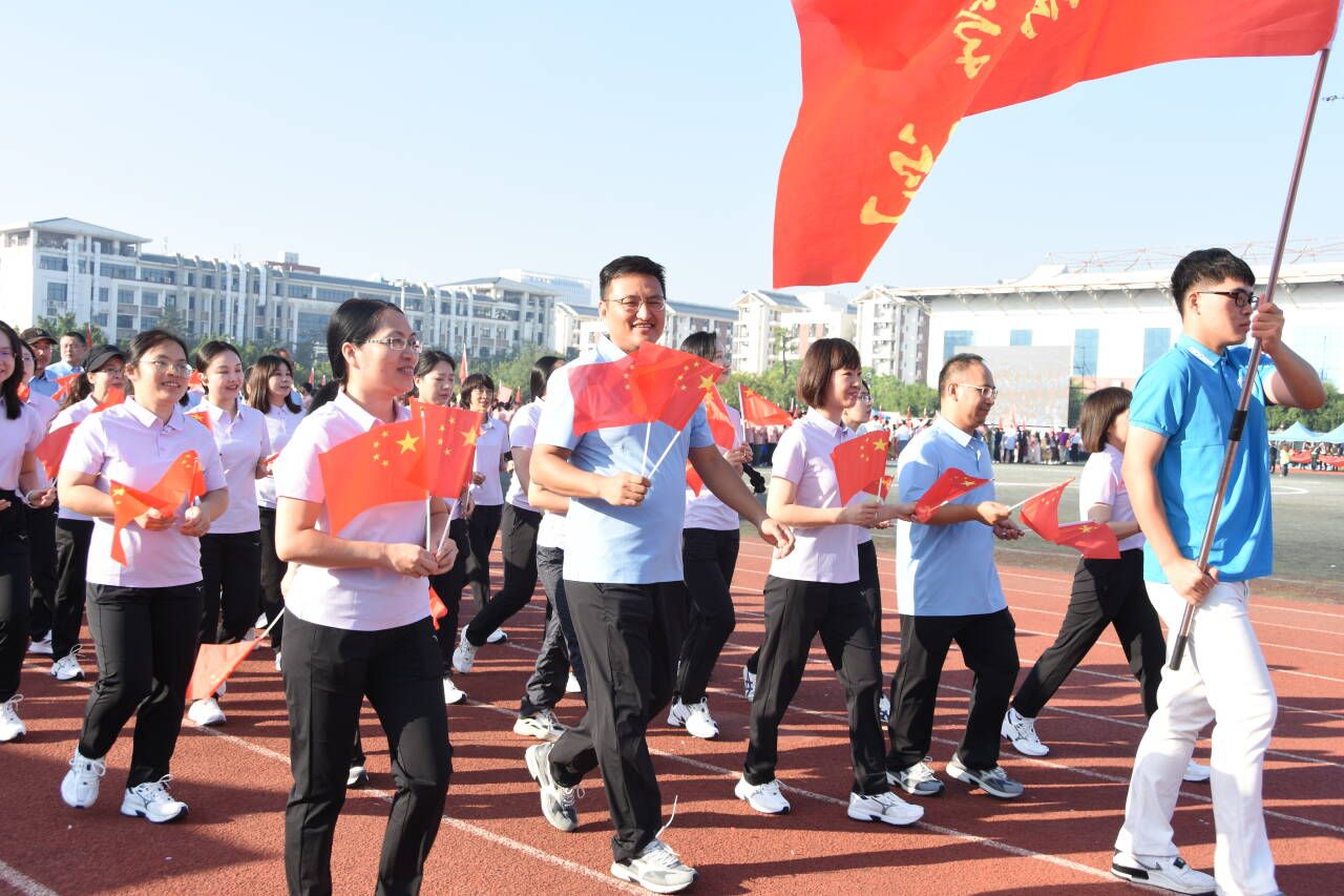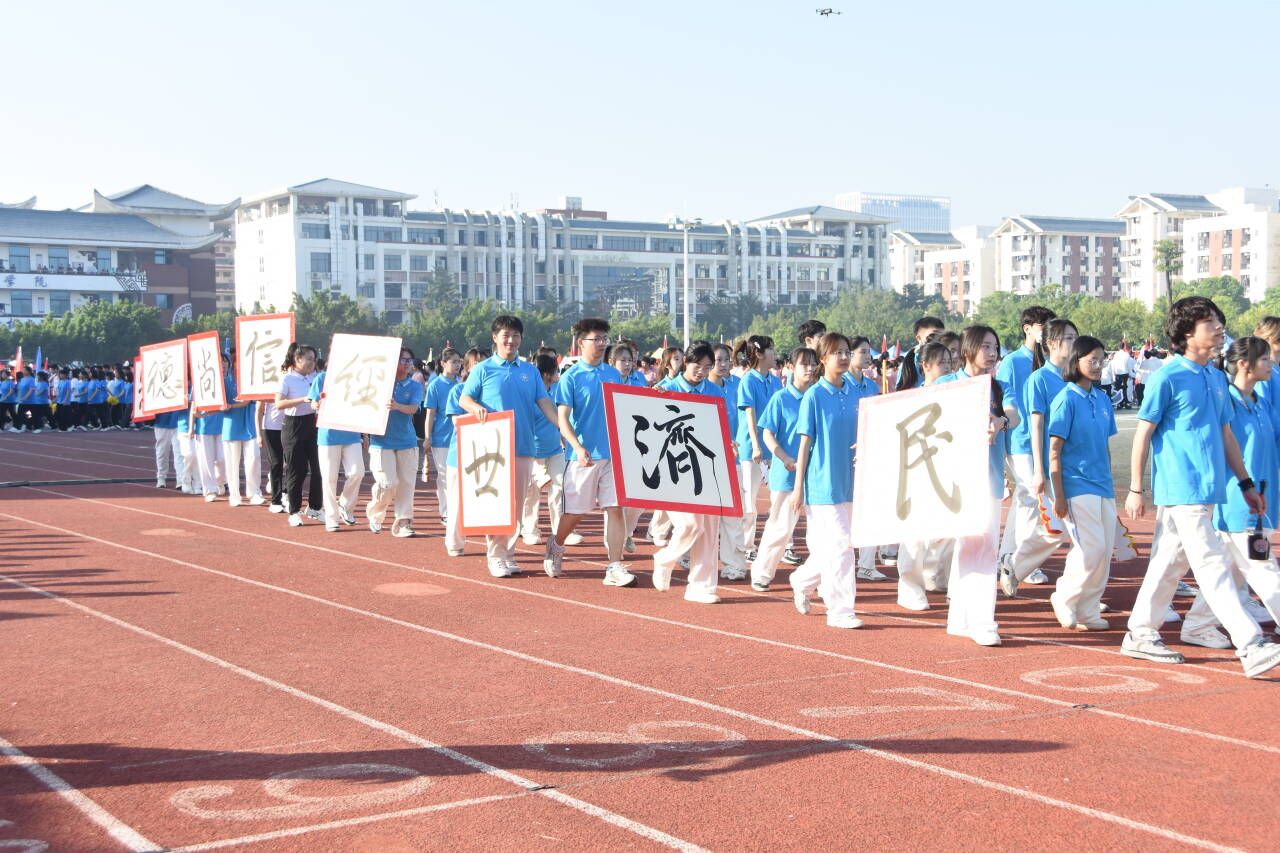 开幕式上,betway必威西汉姆联官网的方阵迈着坚定的步伐入场。教师们手持小红旗,步伐整齐有力。同学们身着统一的服装,演唱《少年中国说》,以曲为伴,用书法展示“崇德尚信 经世济民”的院训。手持花球的同学们围成爱心,巧妙变换花球色彩。独特的方阵表演,展现了betway必威西汉姆联官网学子的创意与才华,更彰显了他们对祖国的深厚感情。