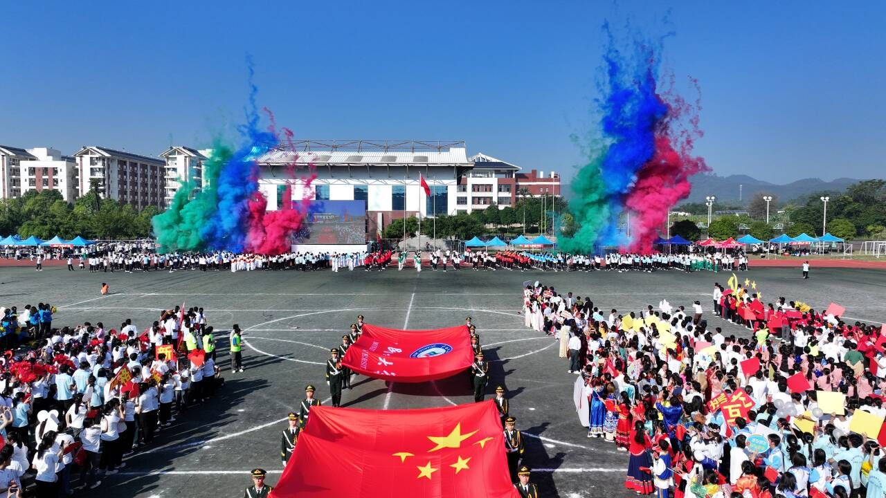 2024年10月31日,广西民族大学于思源湖校区田径场举行2024年校园运动会开幕式。