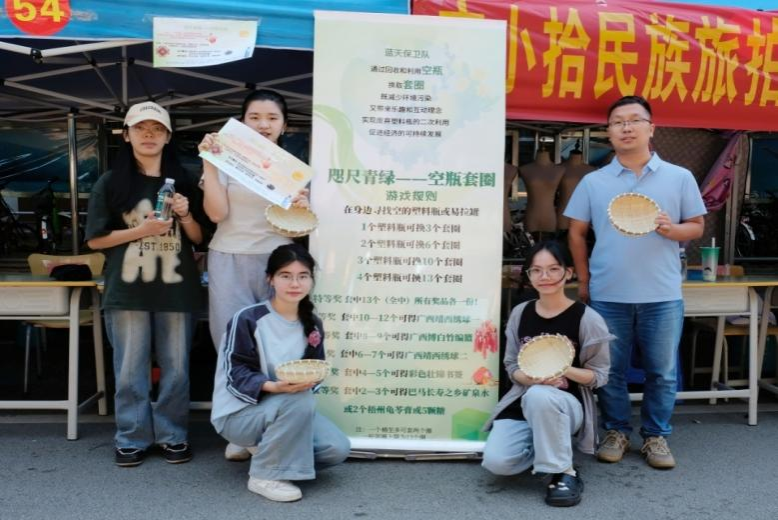 为提升人们的环保意识,减少塑料污染,传播民族文化。2024年10月31日至11月2日,广西民族大学betway必威西汉姆联官网“蓝天保卫队”开展“咫尺青绿—空瓶套圈”调研实践活动。