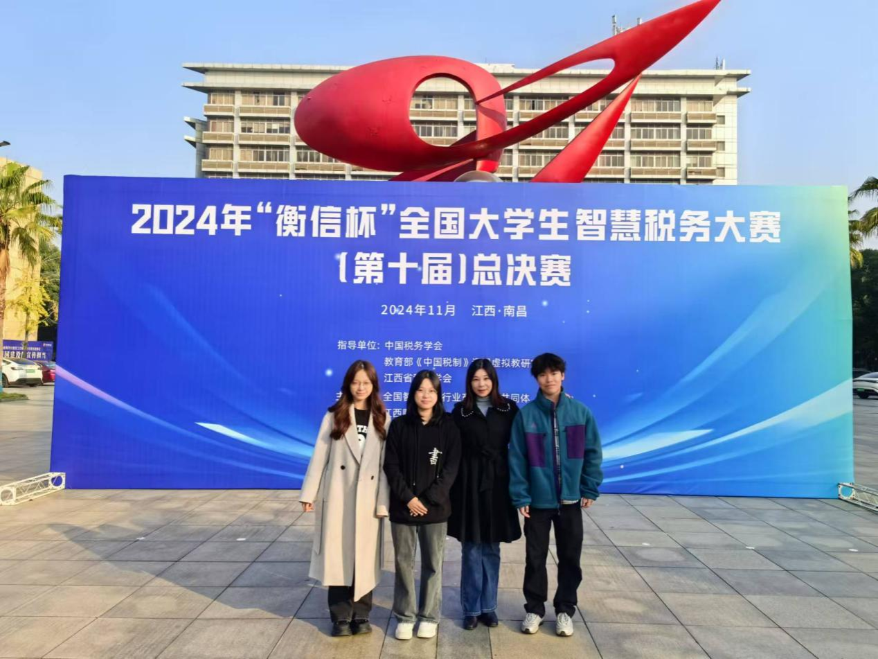 2024年11月23至24日,第十届“衡信杯”大学生智慧税务大赛全国总决赛在江西财经大学举行。我院由2022级税收学专业的许家宝、廖蒙娜、蒋滢翼同学组成的“智税之星”队伍在本次大赛中荣获一等奖。