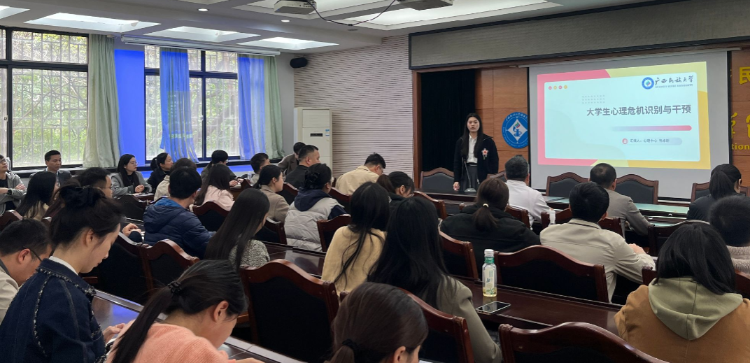 为进一步推动心理育人工作高质量发展,3月18日下午,我院在格物楼206室举办大学生心理危机识别与干预专题培训班,全体教职工参加了本次培训。