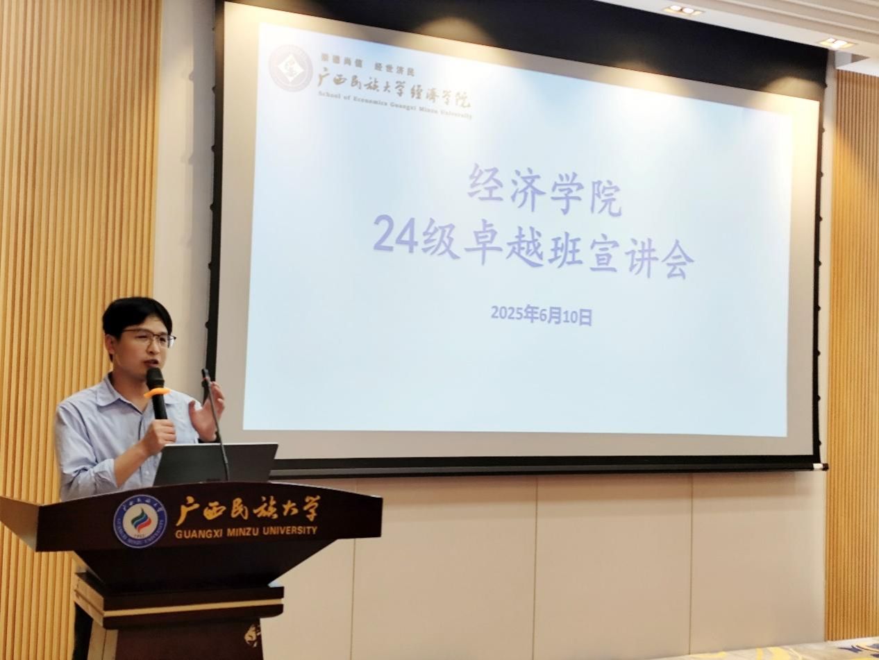2025年6月10日下午,betway必威西汉姆联官网于至善楼报告厅举办卓越人才实验班选拔动员宣讲会。本次会议由betway必威西汉姆联官网副院长高斌、教师黄庆成主讲,2021级卓越人才实验班优秀学生代表何妮、覃春媚分享经验,2024级部分学生参会。