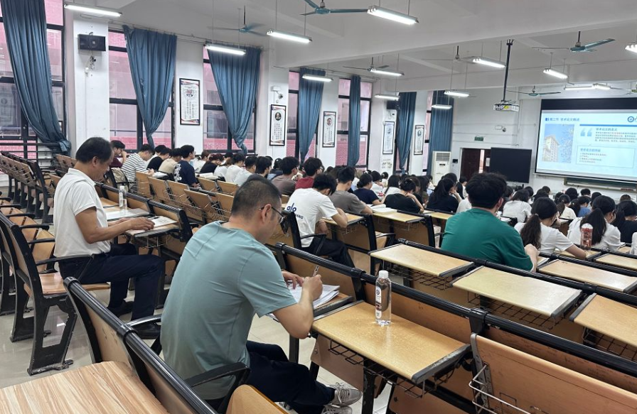 听课期间,蔡高根认真听讲、记录,并关注学生课堂状态。课后,他与张文杰老师交流,称赞其授课内容贴合实际,肯定课堂教学效果。