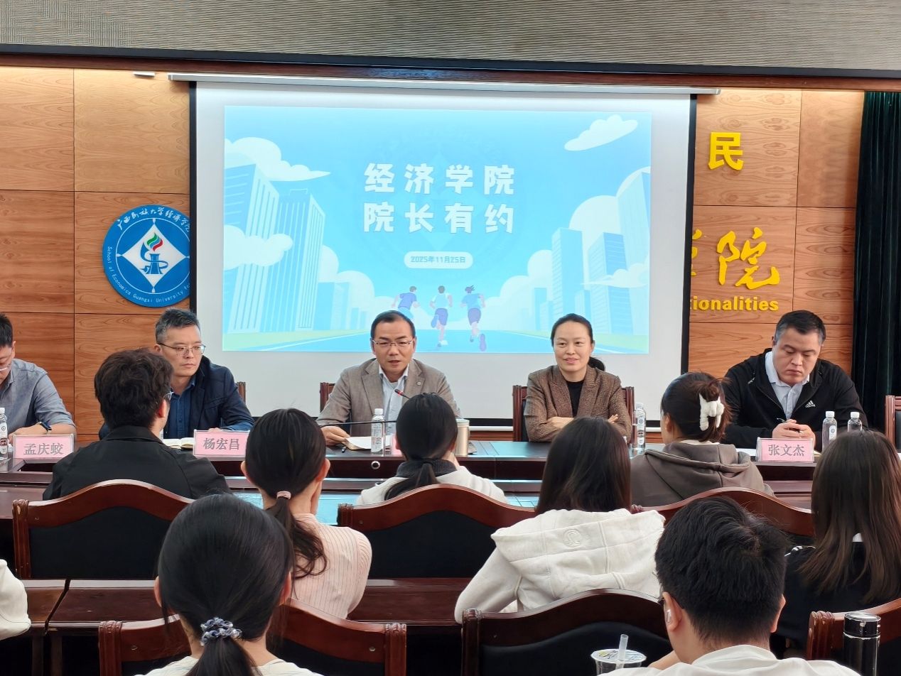 2025年11月25日下午,我院于格物楼206室举办“院长有约”本科生座谈会。我院院长胡超、党委副书记范潇潇、院长助理、经济系系主任杨宏昌、国际经济与贸易系系主任廖万红、税收系系主任孟庆蛟、数字经济系系主任张文杰、团委书记段莹、辅导员黎靖、吕亮宇出席会议,与各本科班级学生代表面对面交流。