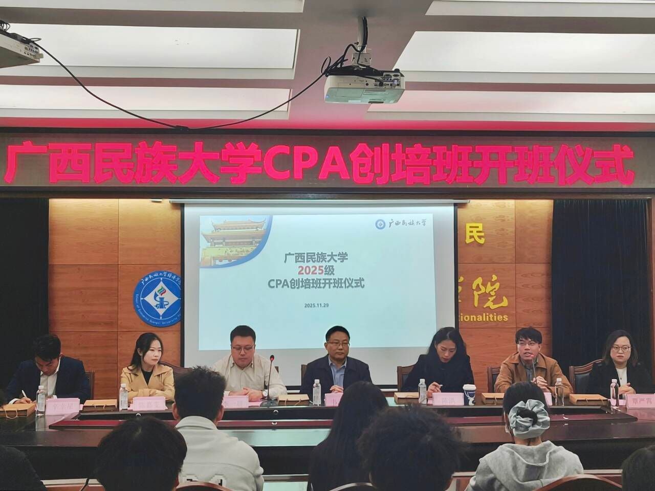 2025年11月29日,我院于格物楼206室举行2025级CPA创培班开班仪式。我院党委书记韦志江、CPA创培班讲师出席仪式,2025级CPA创培班学员参与。