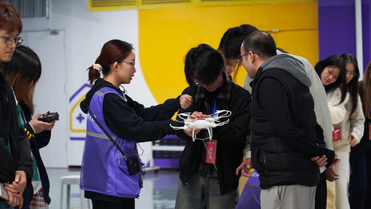 图为团队成员进行无人机操作体验