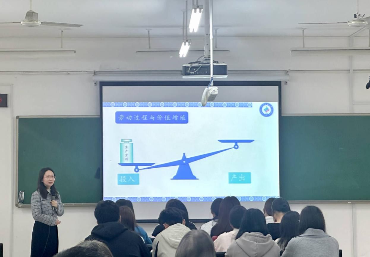 课上,方冬莉老师以预习内容导入课程,并结合广西恭城油茶等民族特色案例和天平动画图示,巧妙地将价值增值理论具象化,让抽象的原理变得生动易懂。她积极与学生互动,引导学生深入思考,营造出活跃的课堂氛围。