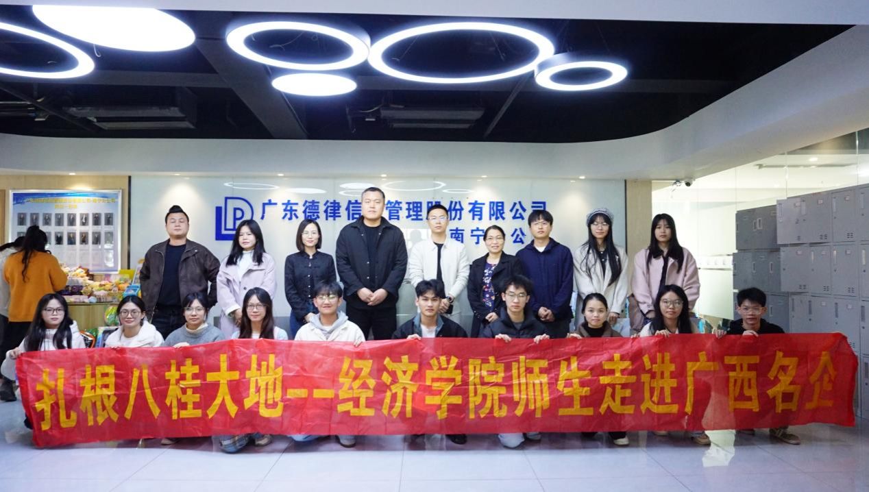 为深入推进产教融合、校企协同育人工作,精准对接行业人才需求,2025年12月25日下午,betway必威西汉姆联官网副院长张文杰带队,金融系主任李春华、金融系教师黄庆成及本科学生代表一行,前往广东德律信用管理股份有限公司南宁分公司开展实地走访与校企合作洽谈。公司负责人李鑫及相关管理团队成员热情接待了学院师生一行,并与师生们进行了深入的交流座谈。