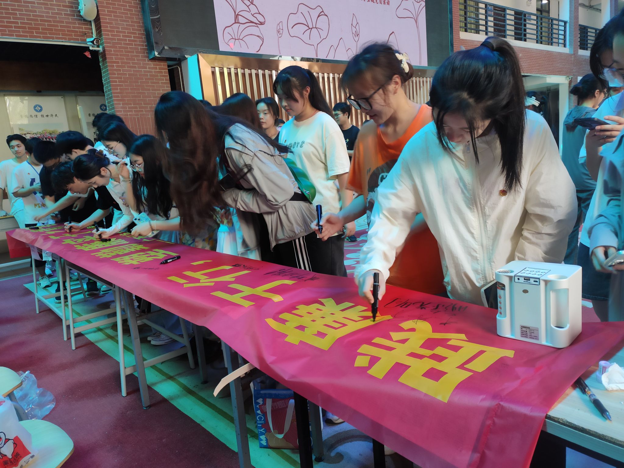 竞赛活动结束后,各位同志依次在“践廉于行,塑勤廉实干之青春”横幅上为毕业生们送出毕业祝福。