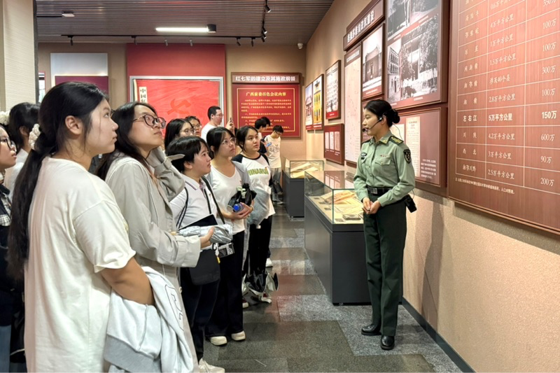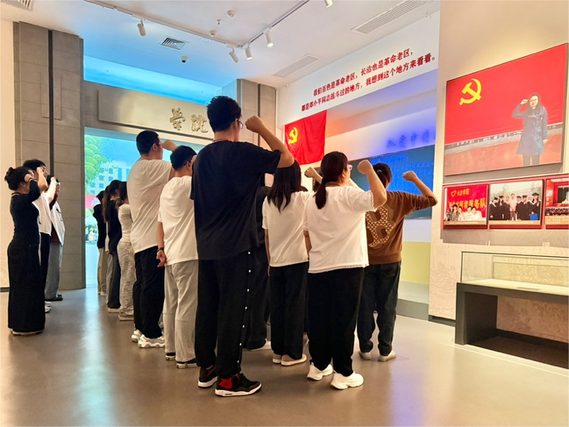 学生党员们认真聆听讲解,在百色起义的壮阔历史中感悟革命先辈的坚定信念,在黄文秀同志的感人事迹中体会共产党人的初心使命。参观尾声,全体党员佩戴党员徽章,面向党旗庄严举起右拳,重温入党誓词。随后,研学队伍参观邓小平手迹碑林、红军桥。