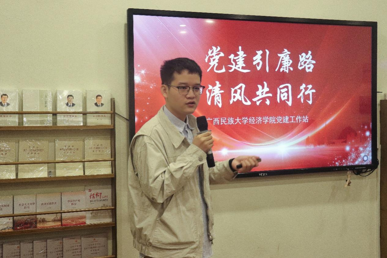 在工人文化宫会议室,党建工作站站长黎靖老师以“党建引廉路,清风共同行”为主题,围绕廉洁的定义、重要性和实践方法,结合校园实际情况,深入剖析廉政风险,进一步增强同志们的廉洁意识和责任担当。他强调,廉洁是党员干部的立身之本,学生党员作为党的后备力量,更应牢固树立廉洁意识,强化担当精神。